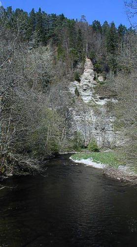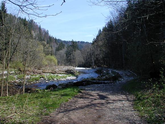 werden (Bild unten). Da der Fluss im Talgrund mäandriert,