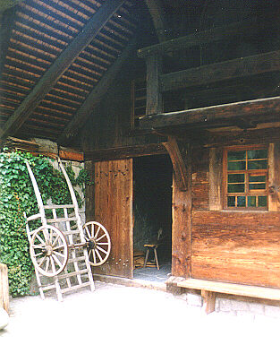 in die Stube mit der umlaufenden Sitzbank und dem Herrgottswinkel.