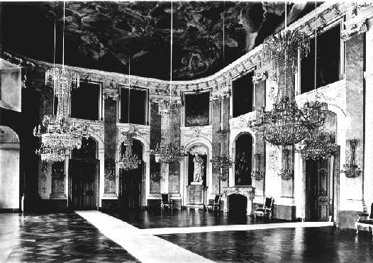 Residenzschloß MannheimDer Rittersaal Der Rittersaal im Mannheimer Schloß, benannt nach den hier stattfindenden Zeremonien der Ritter des Hubertusordens - Aufnahme um 1930. |