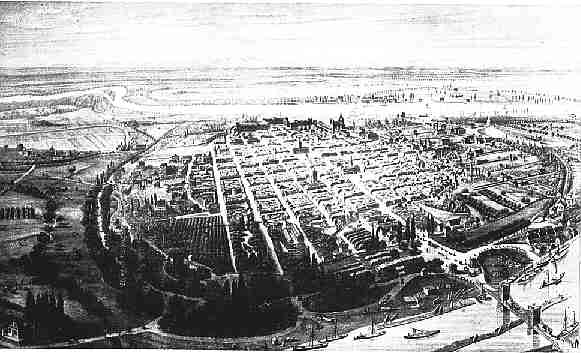 Die Festungswälle sind bereits niedergelegt, aber noch nicht vollständig bebaut. Der äußere Festungsring ist als Promenade angelegt |