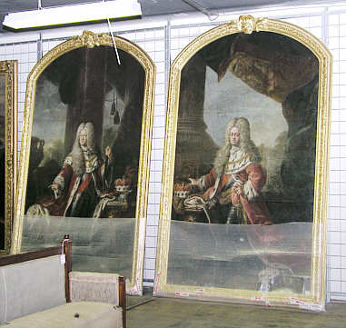 Im Depot warten noch die abgenommenen Bildnisse der Fürsten des kurpfälzischen Hauses aus dem Rittersaal auf ihre Restaurierung. Links Kurfürst Karl Philipp, rechts Kurfürst Johann Wilhelm.