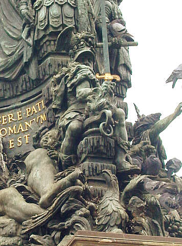 Figur der Constantia (Beständigkeit), die ein Schwert über eine