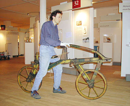 das Laufrad, mit dem Carl von Drais 1819 die Strecke vom Relaishaus