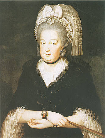 | Heinrich Carl Brandt: Kurfürstin Elisabeth Auguste, um 1782-85 Das Altersporträt der Kurfürstin zeigt sie am Beginn ihres siebten Lebensjahrzehnts mehr im Stil einer wohlhabenden Bürgerin denn als repräsentationsbewusste Fürstin. Es ist die Zeit, in der sie sich nach Oggersheim zurückzieht und nicht ihrem Mann nach München gefolgt ist. |