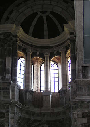 Kapellenapsis mit vor die Apsis-Fensterand gestelltem Säulenhalbkreis