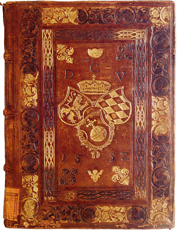 De alchimia opuscula. 1550. Einband des Buchbinders V.S. aus