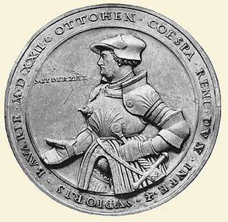 Umschrift: OTTO HENRICVS.D.G. CO.MES. PALATINVS. RHENI. ELECTOR. AETATIS. LVI