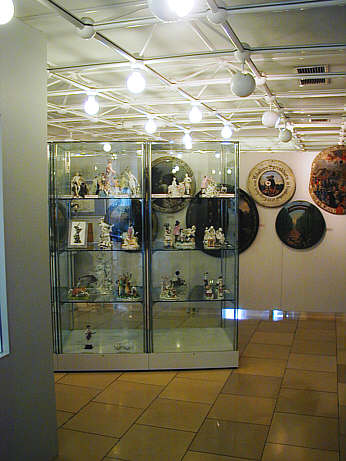Blick in die Ausstellungsräume mit der Vitrine Frankenthaler Porzellan