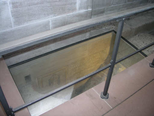 Freigelegte Wandmalerei aus der Bauphase des spätromanischen Chors: Bischof Lütold von Arburg (1202), Weiheinschrift des Marienaltars