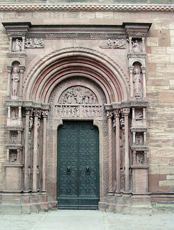 Im Tympanon der thronende Christus mit Petrus und Paulus,