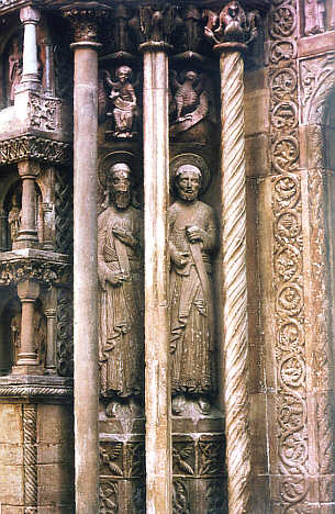 Romanisches Portal am nördlichen Querhaus, um 1180/90 vollendet. Gewändefiguren: Die Evangelisten Matthäus und Johannes