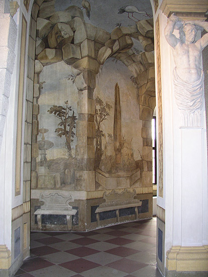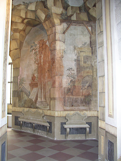 gehört auch das Laubenzimmer, das mit seiner Ausmalung die Illusion