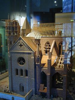 Baustelle des Münsterneubaus. Modell im Stadtmuseum Freiburg