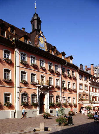 Rathaus Nach dem großen Stadtbrand 1726 wurde 1766 als schönster barocker Neubau von Waldshut das neue Rathaus durch Baumeister Ferdinand Weitzenegger errichtet.
