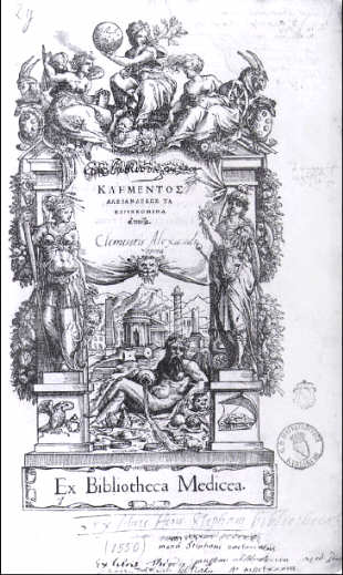 Clemens Alexandrius, Opera, Genf 1550 (42 C 15 R), Titelblatt