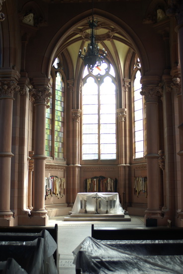 ist aus Holz, das Chorgewölbe ist steinern. Hier stehen die marmornen