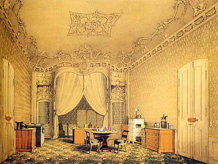 Auffällig ist die sparsame, fast bürgerliche Möblierung.im