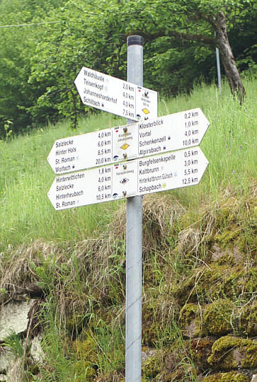 den Entfernungsangaben ausgeschildert.