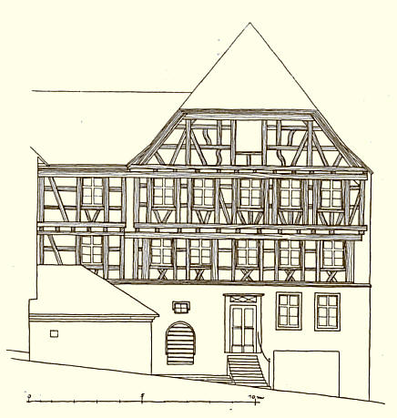 Das Fachwerk am Marktplatz zeigt neben den Fensterpfosten nur die Schrägkreuze unter jedem Fenster. Reste von breiten Fenstererkern sind noch gut zu erkennen.