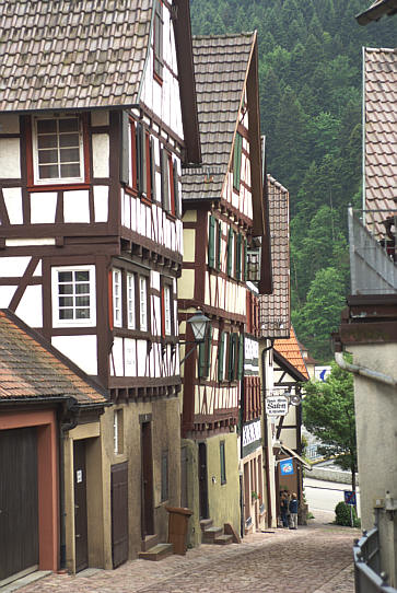 [Am Ende der Spitalstraße stehen zwei der ältesten Häuser,] die in ihrem Aufbau unbd in Einzelheiten noch manche altertümlichen Züge aufweisen. ... Die beiden nebeneinander stehenden Häuser haben ... ein äußerst eindrucksvolles Gepräge, das vor allem von den vorkragenden Stockwerken mit den kräftigen Balkenköpfen und den tiefen Schlagschatten bestimmt wird. In der Beschränkung des Holzwerks auf die einfachsten Formen und in der unsymmetrischen Fensterverteilung sind diese Häuser noch ausgesprochene Beispiele für den Formwillen des gotischen Mittelalters.