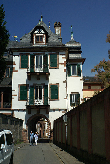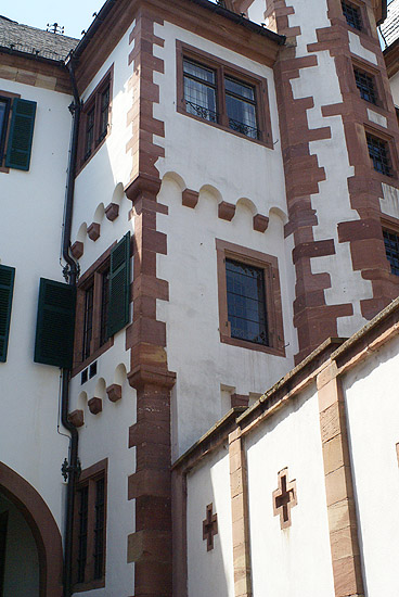 Ludwig V. zurück gehender Bauteil am Obertor. Rundbogenfriese markieren