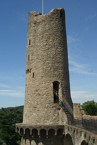 angebaut. Die Kernburg ist von einer zweiten Zwingermauer umgeben. Der Burghügel