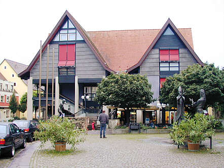 Im Gebiet des Domhofs errichtet. Davor auf dem Platz Bronzeplastiken "Bischof und Kurfürst".