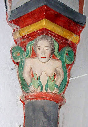 Kapitell: Frau mit zwei Schlangen, die in ihre Brüste beißen
