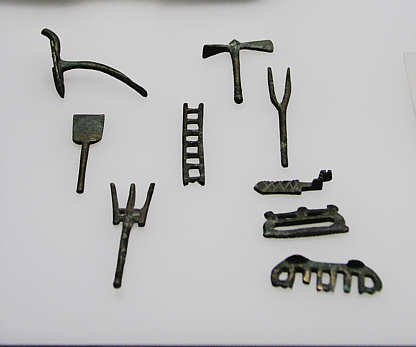 Miniaturnachbildungen landwirtschaftlicher Geräte als Beigaben im Grab einer Frau