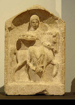 Göttin thront eher auf dem Pferd als dass sie reitet. In