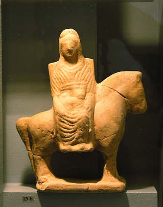 Terrakottastatuette der keltischen Göttin, Pferd mit aufmontierter Sitzfigur.