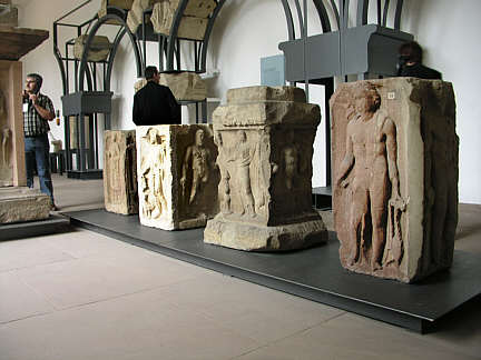 Viergöttersteine bildeten die Basis für Jupitergigantensäulen und trugen auf ihren vier Seiten das Bild der vier verehrten Götter - meistens Juno, Merkur, Minerva und Herkules