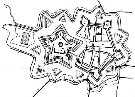 Burg und Neustadt von Moers durch ein Festungssystem nach niederländischem