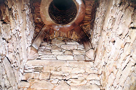 Gewölbe des Badeschachts mit kreisrundem ehemaligem Lichtschacht