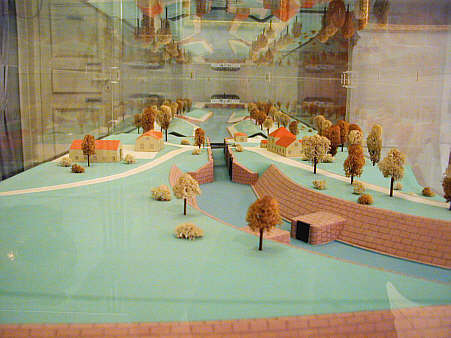 Modell des Kanals, der die Stadt mit dem Rhein verband. Im Hintergrund die Hafenanlagen.