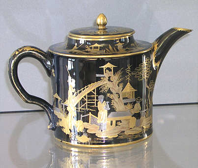 Chinoiserie-Dekor auf schwarzgrundigem Porzellan in Wien und