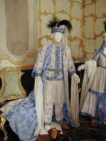 Ein Märchen im orientalischen Glanz Kostüme nach Vorlagen des frühen 18. Jahrhunderts Nach den Vorlagen in den Kostümbildern der markgräflichen Sammlung wurden für die Inszenierung der barocken Maskeraden im Schloss zwei Kostümpaare nachgeschneidert. |