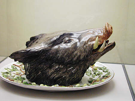 Terrine in Form eines Wildschweinkopfes aus Fayence