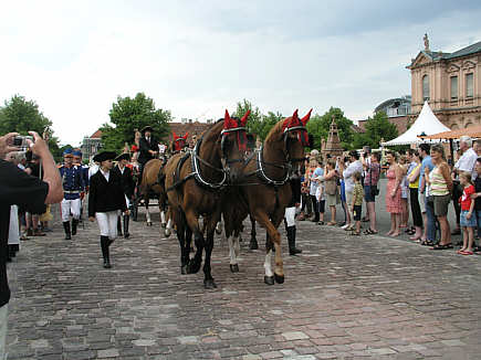 Markgraf Ludwig Wilhelm und Markgräfin Sibylla Augusta beim Einzug in einer sechsspännigen Kutsche