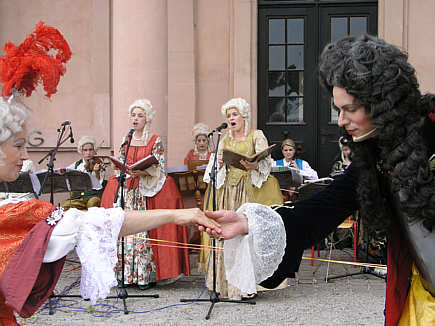 Seine Hochfürstliche Durchlaucht, Markgraf Ludwig Wilhelm von Baden-Baden, und Ihre Hochfürstliche Durchlaucht, Markgräfin Augusta Sibylla, bei einem stilvollen Solo-Tanz.