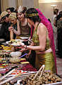 Anneliese Almasan (Schlösser & Gärten) und Ulrich Reich (Service-Center Rastatt, rechts) im persischen Kostüm, Thomas Angelou (Service-Center Rastatt) in einer indisch inspirierten Seidenkreation bei der Begrüßung der Gäste