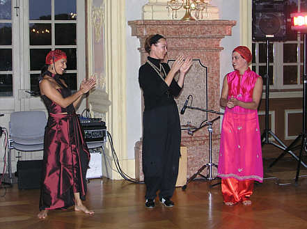 Orientalische Designer-Inspriationen, orientiert an der Tradition indischer Hochszeits-Saris, vorgestellt von krey & harvey In der Mitte die Designerin Stephanie Krey