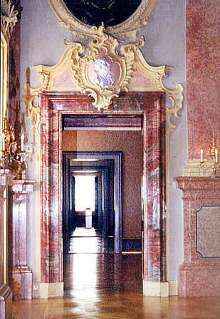 Die Enfilade, die Anreihung der Appartements mit der Flucht der Durchgangstüren ist im Rastatter Schloss noch im Originalzustand erhalten.