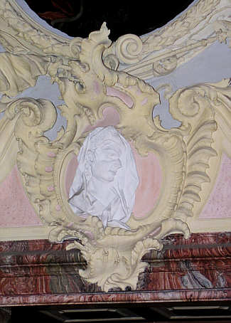 Stuck-Kartusche mit dem Porträt-Relief der Markgräfin über der linken Tür