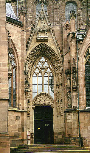 In der Spitze des Wimpergs die reitende Ecclesia triumphans, die triumphierende