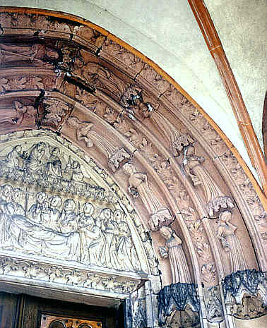 um 1310, mit einer Darstellung des Marientodes im Wimperg und