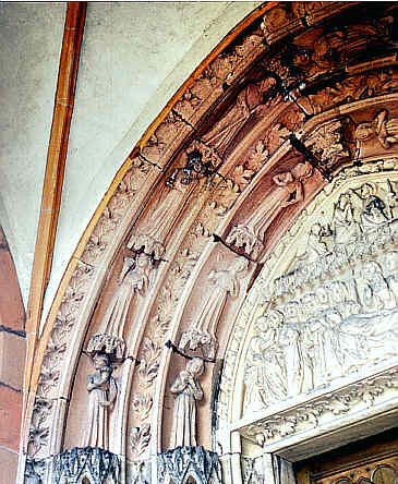 um 1310, mit einer Darstellung des Marientodes im Wimperg und