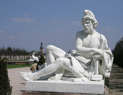 vier Ecken des ehemaligen unteren Wasserbassins sind Figuren