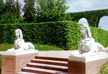 Schon 1761 wurde die Gestaltung des Naturtheaters im klassischen Sinn mit halbrundem, eingetieften Zuschauerraum und einer erhöhten, leicht ansteigenden Bühne begonnen. Zu beiden Seiten des Proszeniums befanden sich Durchgänge aus einem hölzernen Gitterwerk mit Portalarchitektur. Diese wurden 1843 durch eine umstürzende Ulme zerstört und nicht wieder aufgebaut. Erst in unseren Tagen wurden an ihre Stelle Bäume gepflanzt, um die Raumwirkung wieder zu vermitteln.