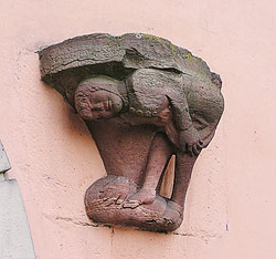 Von dem vermutlich um 1470 errichteten Kemenatenbau dürfte die als "Spottfigur " bezeichnete Konsolskulptur stammen, die wohl im 19. Jahrhundert rechts neben der Hofeinfahrt angebracht wurde.